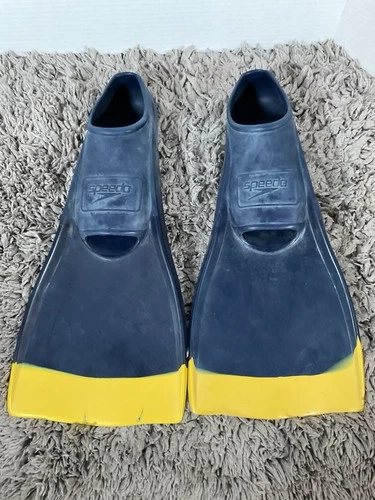 Speedo Unisex Swim Training Fins Rubber Long Blade, Yellow/Blue Size S 5-6 38-39