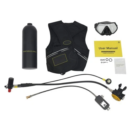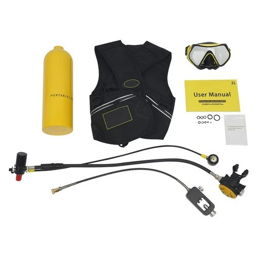 2L Scuba Tank Kit Yellow Aluminum Snorkel Set With Regulator And Diving Mask