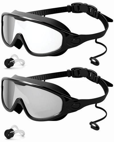 Rantizon Swim Goggles 2 Pack, Wide Large for Adults, Transparent Black & Gray