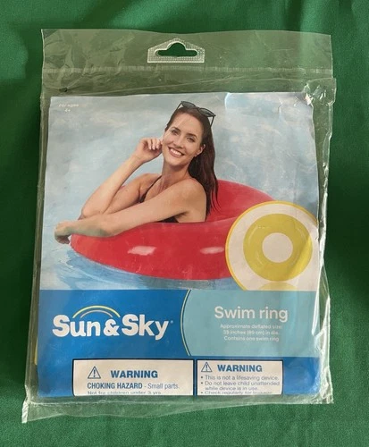 Pool Float Tube PVC Swim Ring Inflatable Yellow 35 inches by Sun & Sky new