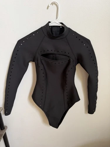 GIGIC Women's Black Long Sleeve Wetsuit Cutout Triangle Details Size C
