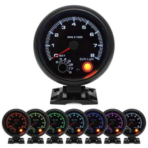 MH 3.75" 95mm Tachometer 0-8000 Large RPM Gauge 7 Color Car AUTO Tacho Shift ...