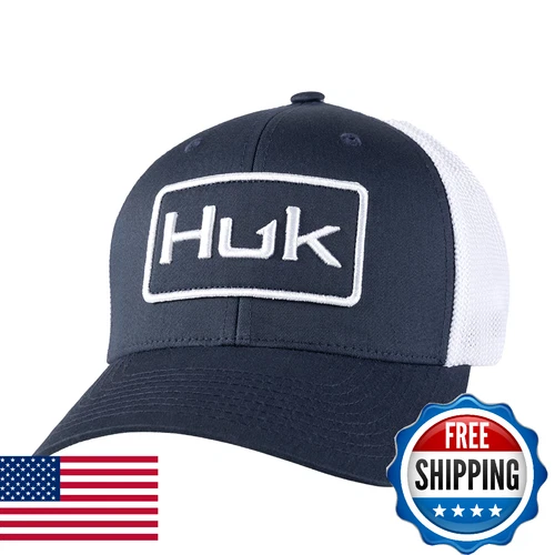 HUK Mens Trucker Hat Snapback Fishing Hat Anti-Glare Silver Blue One Size