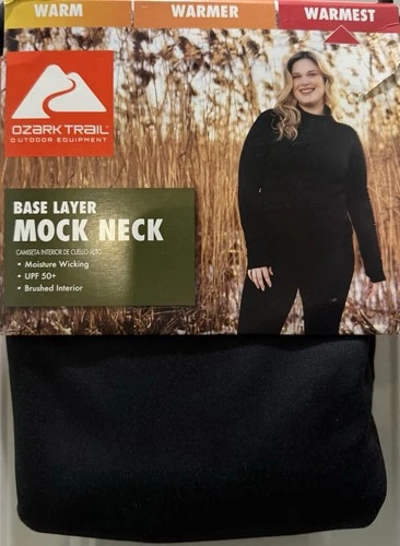 New!Ozark Trail Womens Black Soot Base Layer Long Sleeve Mock Neck Top. Size M.