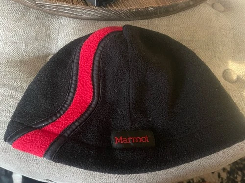 Marmot Fleece Beanie Hat OS One Size EUC Blk Red Ski
