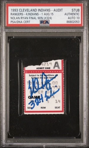 1993 Aug 15 Nolan Ryan HOF Signed 324 Win Ticket Stub Certified PSA/DNA 10 Auto