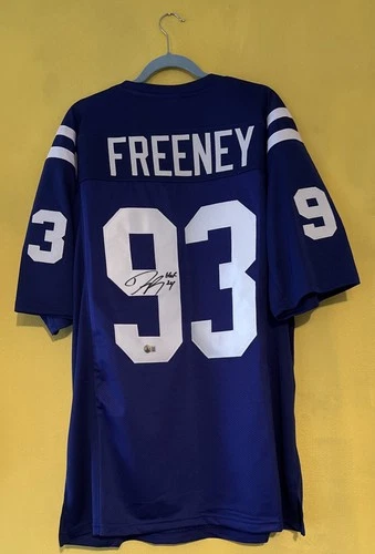 Autographed/Signed DWIGHT FREENEY Indianapolis Blue Football Jersey JSA COA Auto