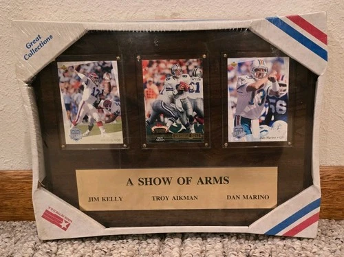 A SHOW OF ARMS JIM KELLY, TROY AIKMAN, DAN MARINO HOF'ERS PLAQUE 12"× 9"