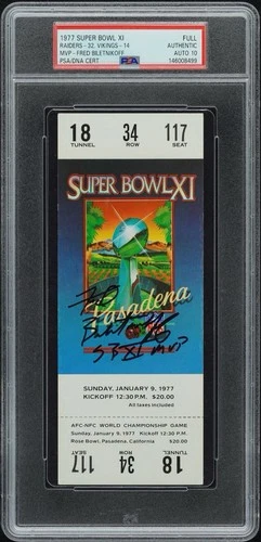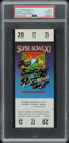 Fred Biletnikoff Signed Super Bowl 11 Ticket Stub w/ "SB XI MVP" PSA GEM 10 AUTO