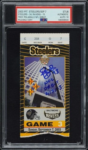 Troy Polamalu Signed Debut Ticket Stub w/ "NFL Debut 9/7/03" PSA GEM 10 AUTO