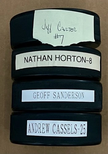 Lot of 4 CBJ Signed Pucks: Carter, Horton, Sanderson & Cassels w/ No COA’s
