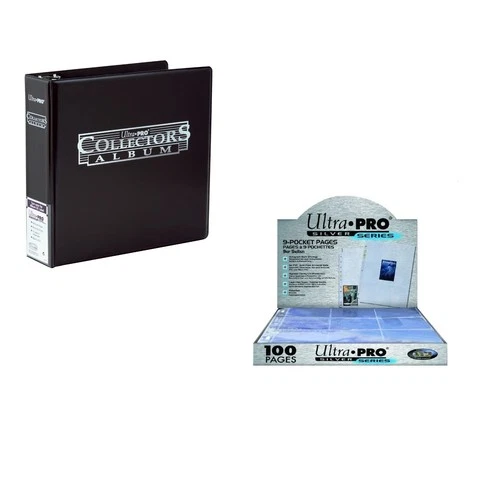 Ultra Pro Card Collector's Album and Pages Combo Black Binder + Box of 100 Pages