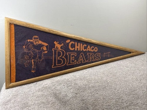 Rare 1940's-50's CHICAGO BEARS Pennant Great Graphics FRAME Measures 34”