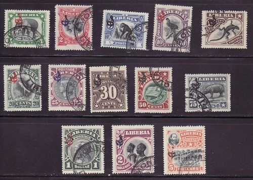 Liberia # O46-58 CTO 1906 Set Elephant, Chimp, Bird, Lizard, Hippo