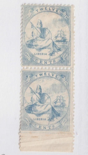 LIBERIA #7 vertical pair TALL SHIP imperf bottom margin UNUSED NO GUM hinged