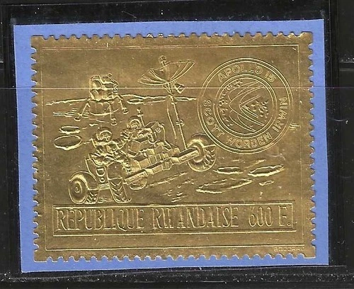 RWANDA STAMP -- GOLD, APOLLO 15 -- 1972 -- MINT