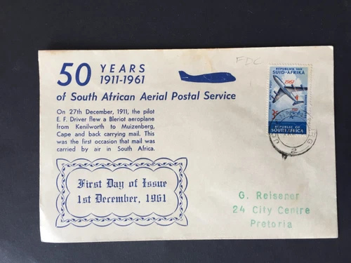 SOUTH AFRICA 1961 3c 50th AIR POST ANNY ON FIRST DAY COVER TO PRETORIA