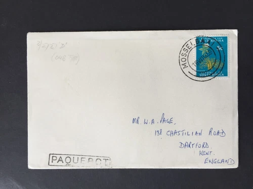 SOUTH AFRICA 1969 MOSELBAAI (MOSSEL BAY) PAQUEBOT POSTMARK ON COVER TO KENT GB