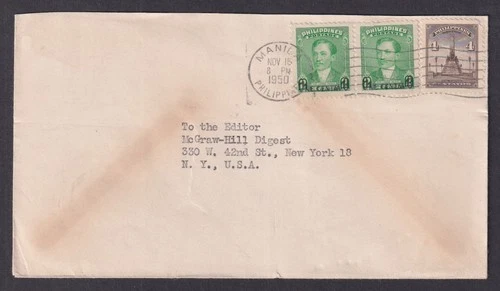 Philippines 1950 Cover Manila to New York USA