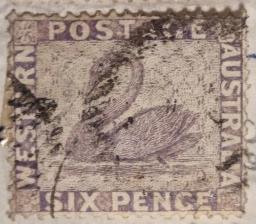 WESTERN AUSTRALIA, 1861 SIX PENCE, VIOLET, 14 PERF. USED/HINGED STAMP.
