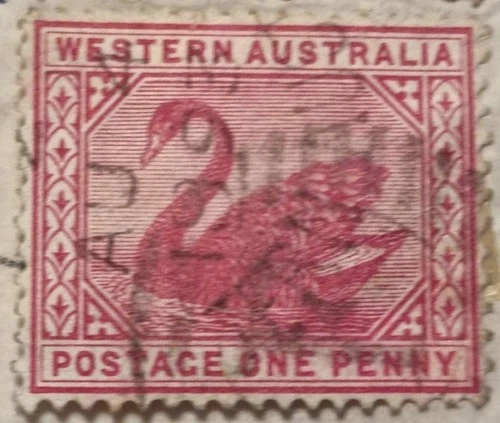 WESTERN AUSTRALIA, 1890-93 ONE PENNY, CARMINE ROSE, USED/HINGED STAMP.