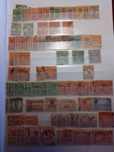 Australia stamp. Stock book + leaves. Roos + KGV heads on. W/45