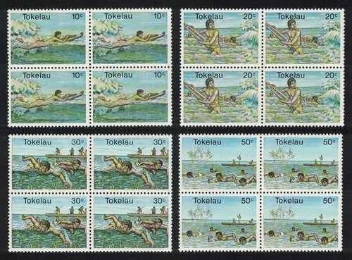 Tokelau Swimming Water Sports 4v Blocks of 4 1980 MNH SG#73-76 Sc#73-76