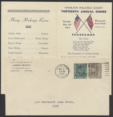1944 Hamilton Philatelic Society 13th Annual Dinner Souvenir Program and Cover