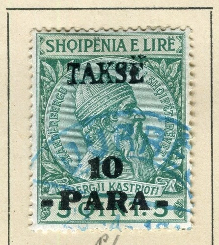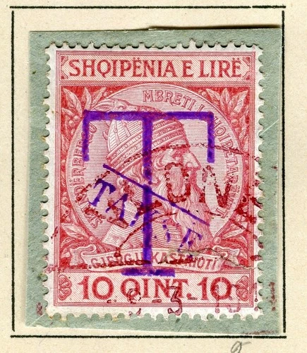 ALBANIA; 1914 early Skanderbeg ' T TAKSE ' Handstamp used 10q. value ON PIECE