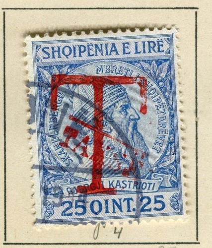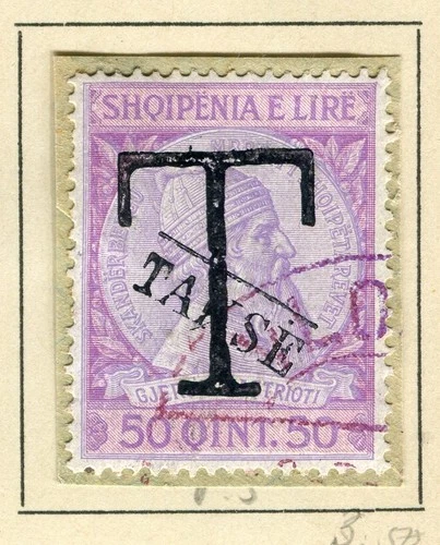 ALBANIA; 1914 early Skanderbeg ' T TAKSE ' Handstamp used 5q. value