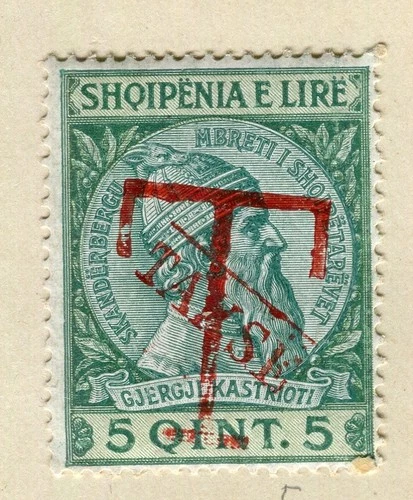 ALBANIA; 1914 early Skanderbeg ' T TAKSE ' Handstamp fine used 5q. value