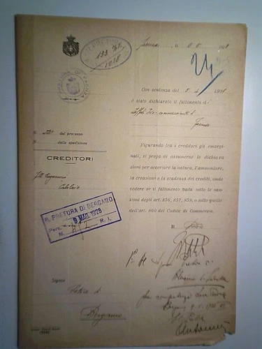 Piego Viaggiato "R. PRETURA DI FAENZA BANKRUPTCY - PRAETOR BERGAMO" 1928