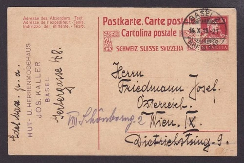 SWITZERLAND 1919, Pre-stamped postcard from Basel to Vienna