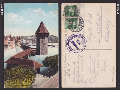 SWITZERLAND 1918, Censored postcard to Luxembourg, WWI
