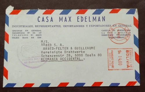 EARLY AIRMAIL COVER BOLIVIA AUTOMATIC CANCELLATION (k14)