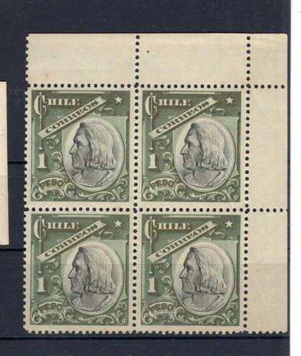 CHILE 1904-09 Peso Bronce 1 peso TOP value block of 4 MNH corner sheet