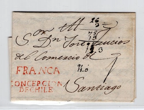 CHILE Prephilatelic FRANCA CONCEPCION DE CHILE scarce complete letter dated 1811