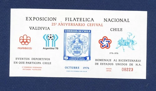 CHILE - - MNH S/S - Valdevia Arms, Soccer, Olympics - National Stamp Show - 1976