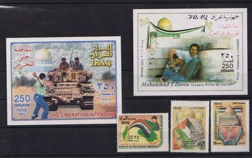 Iraq, 2001 Al-Aqsa Intefadah in Palestine, set of 3 stamps + 2 S/S MNH See scan.