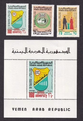 Yemen Arab Republic 1976 1st Anniversary of the Revolutionl set of 3 & MS MNH