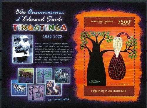 Burundi 2012 MNH MS, Painting, Edward Tingatinga, Peacock, Birds