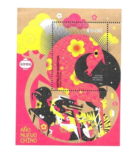 #75419C ARGENTINA 2026 CHINA NEW YEAR CHINESE FIRE HORSE ZODIAC S/SHEET MNH+FDC