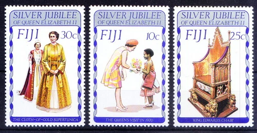 Fiji 1977 MNH 3v, Queen, Gold colour Costume, King Edward Chair, Antiques
