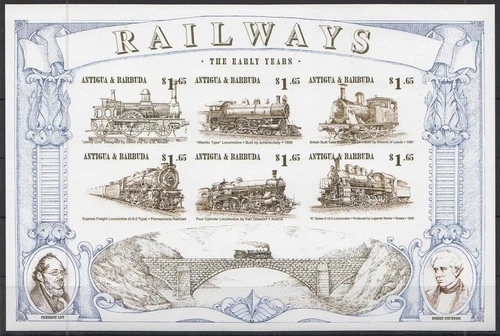Antigua & Barbuda 1997 MNH Imperf SS, Early Yrs of Train, Railways, Bridge