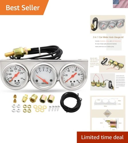 2’’ 52mm Triple Gauge Set (Oil Pressure+Water Temp+Voltmeter) 3 in 1 Gau