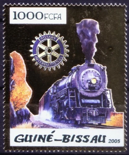 Guinea Bissau 2005 MNH, Locomotives Train, Rotary, Odd embossed Gold foil (a)