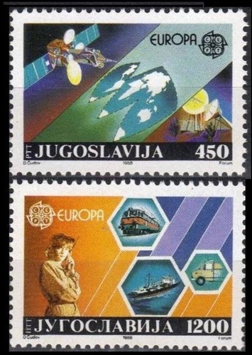 Yugoslavia 1988 MNH 2v, Transport and Communications Railways Train Ships Mobile