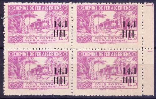 Algeria 1945 MNH Blk, Railways Parcel Post Trains Surcharge Yvert et Tellier DZ