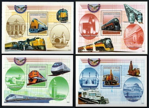 Guinea 2000 MNH 4 MS set, Trains, Railway Stations, Engine