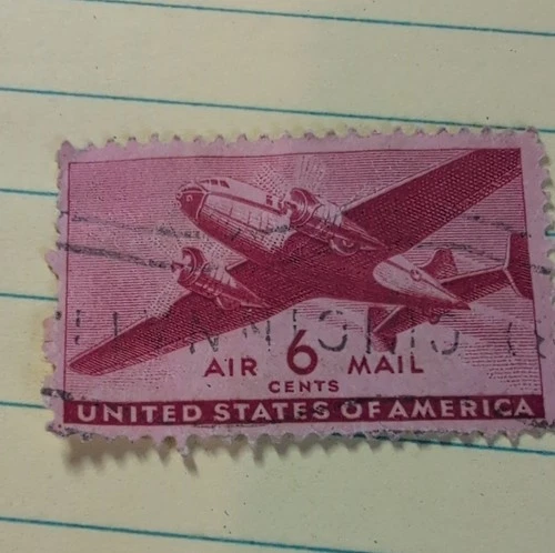 1940's United States Air Mail 6 Cent Aviation Stamp Red Used